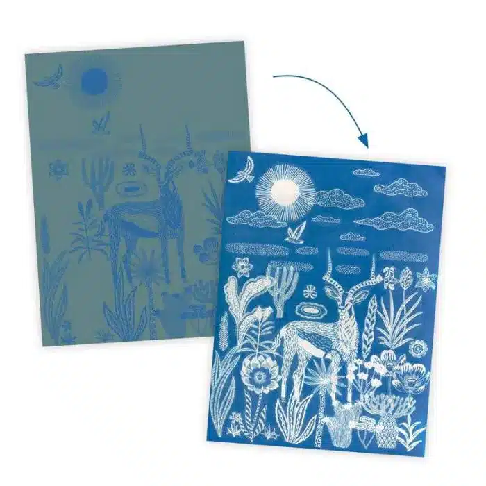 Ha pedig kifogynátok a lapokból, érdemes mellé venni a Djeco cianotípia papírpótlást is.