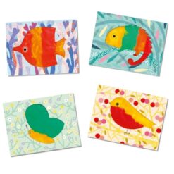 Az alkotás során a gyerekek négy vicces állattal találkoznak: hal, madár, pillangó és kaméleon.