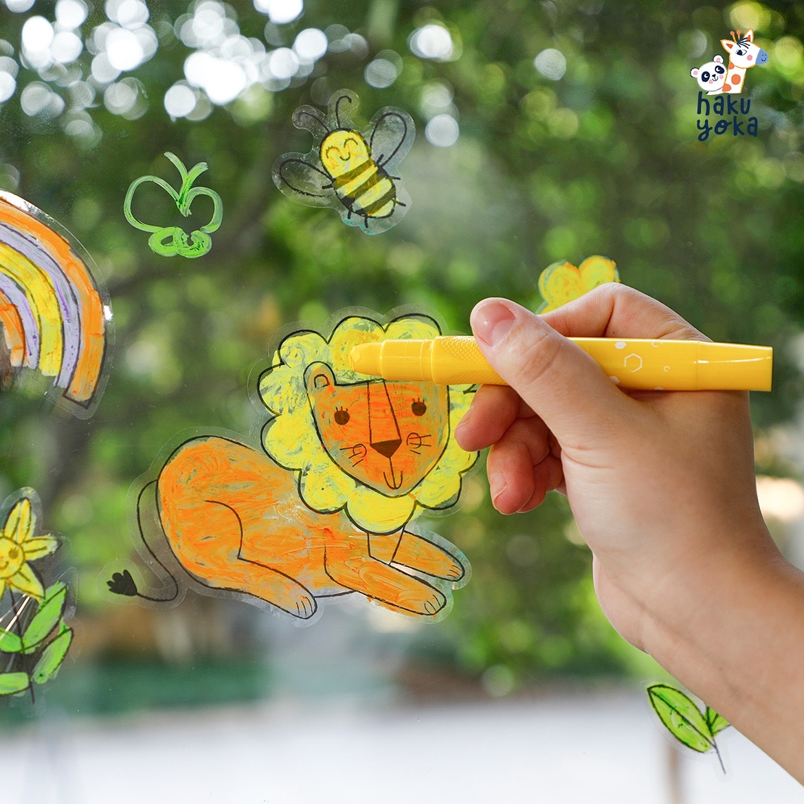 Ez a készlet megoldja a szülők egyik legnagyobb dilemmáját: hogyan engedjük a gyereket az ablak közelében alkotni anélkül, hogy utána órákig vakarnánk a ragasztót az üvegről. A Haku Yoka dzsungeles csomagja 10 darab statikus matricát tartalmaz, amik ragasztó nélkül, pusztán a fizika segítségével tapadnak a fényes felületekre (ablakra, tükörre, csempére).