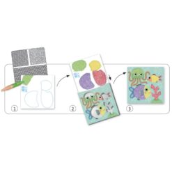 Egy nagyon élvezetes, látványos, kézügyességet és a fantáziát fejlesztő színező készlet,melynek segítségével egy a gyerekek megismerkedhetnek a dörzsélés, frottage technikával és az állatokkal.
