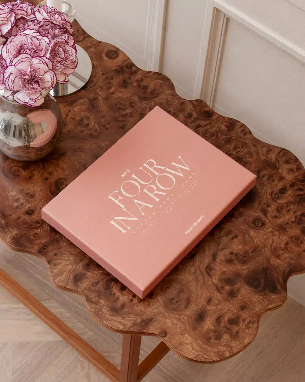 A Printworks „Four in a Row” játéka egy valódi prémium darab a kategóriában: lakkozott fa alapanyag, puha rózsaszín és szürke korongok, stabil tábla, amely összehajtható, így tárolása is egyszerű. A 42 db korongból 21-21 szín szerint oszlik meg, a játék pedig gyerekeknek és felnőtteknek egyaránt szórakoztató.