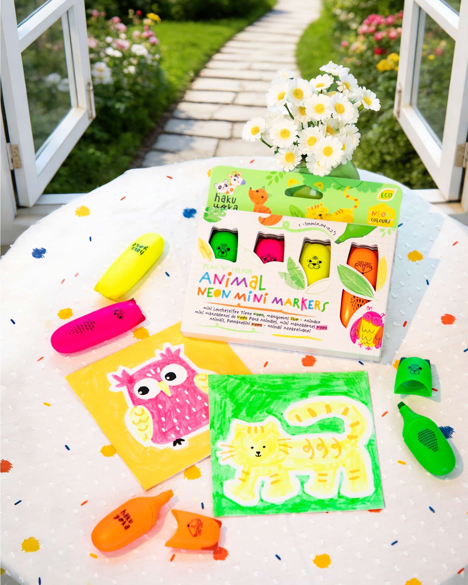 Tartalom: 4 db vastag, neon színű állatos filctoll (vízbázisú tintával)