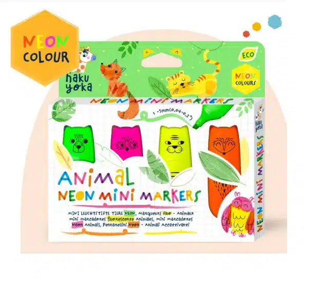 Vigyél egy kis extra fényt és vidámságot a mindennapokba a Haku Yoka Neon állatos filctoll készletével! Ezek a tollak nem csupán egyszerű írószerek, hanem apró, állati karakterek, akik elkísérik a gyerekeket a színek birodalmába. A készletben található négy vibráló neon árnyalat tökéletes színezéshez, rajzoláshoz, vagy akár a kedvenc mesekönyvek fontos részeinek kiemeléséhez is.